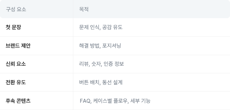 고객 사례, 사용 후기, 수치적 근거가 함께 들어가야