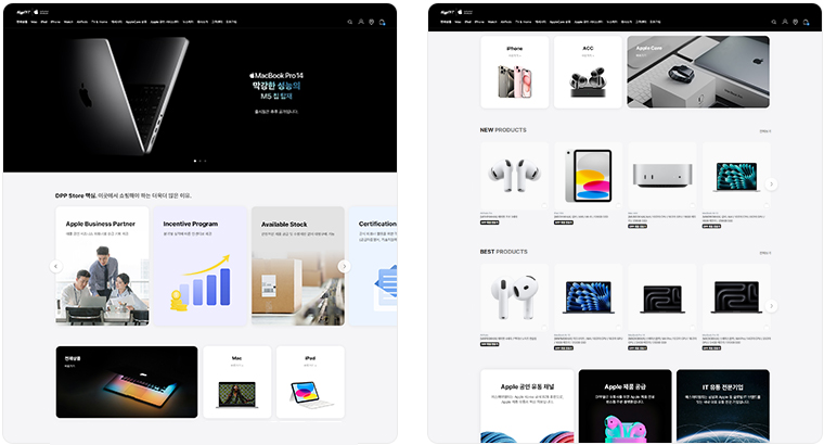 또한 Apple 공식 총판사로서의 브랜드 정체성과 보안 요건을 디자인과 기술 측면 모두에서 세심하게 반영했습니다.